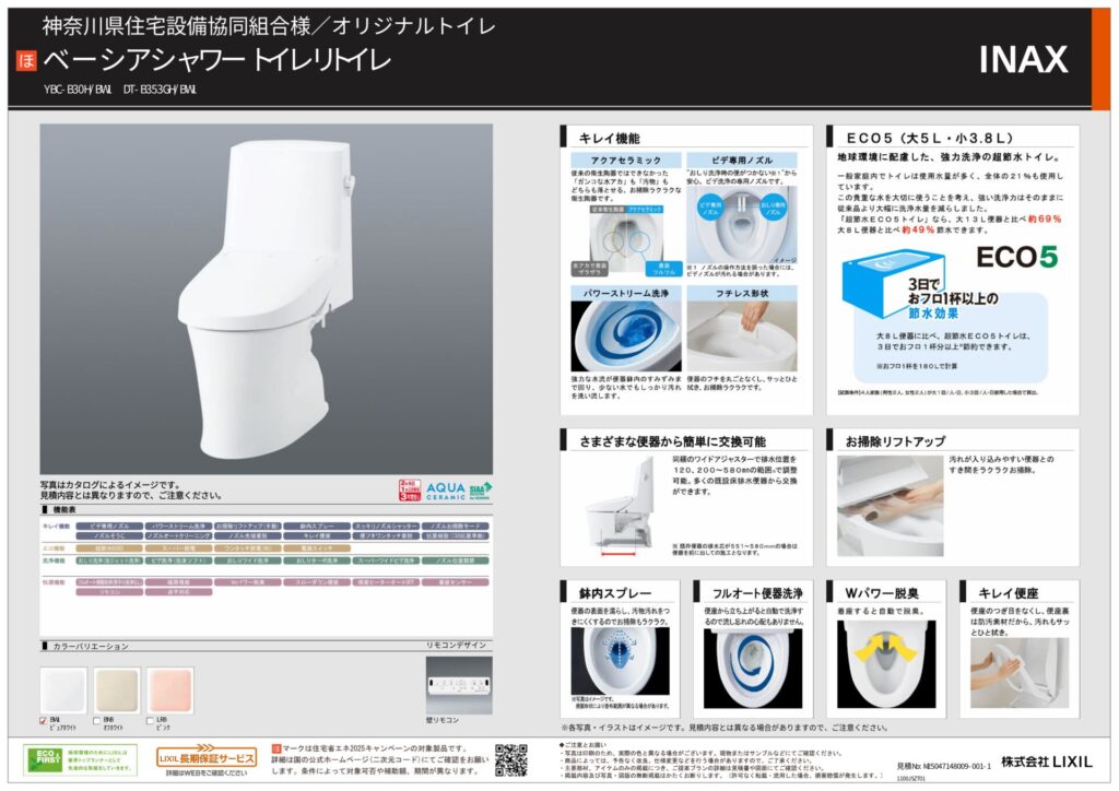 取り付け製品名LIXILリノビオVシリーズ Fタイプ|ベーシアシャワートイレリトイレ
