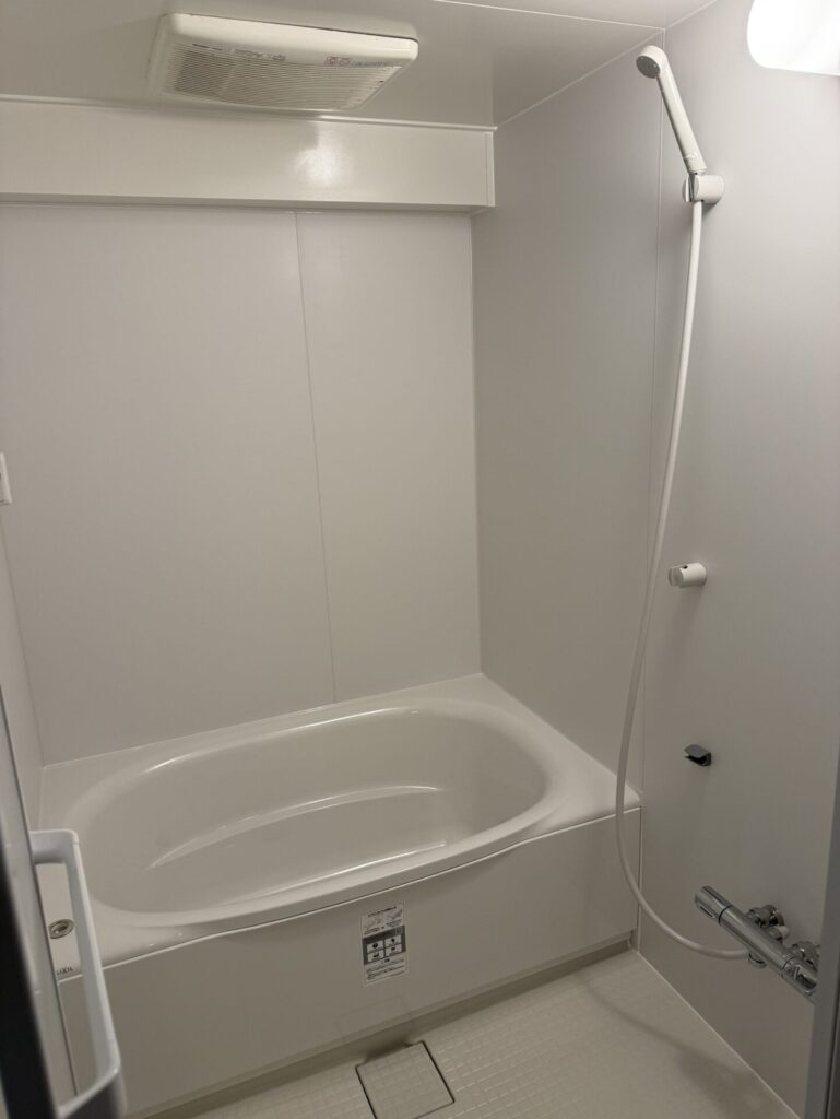 マットホワイトの全面壁パネル、ホワイトの床・浴槽・エプロンで空間全体を白で統一することで、浴室が光に包まれた清潔感あふれる聖域へと変わります。マットな質感が柔らかな光を吸収し、眩しさを抑えながらも明るさを保つ、洗練された美しさが実現しています。