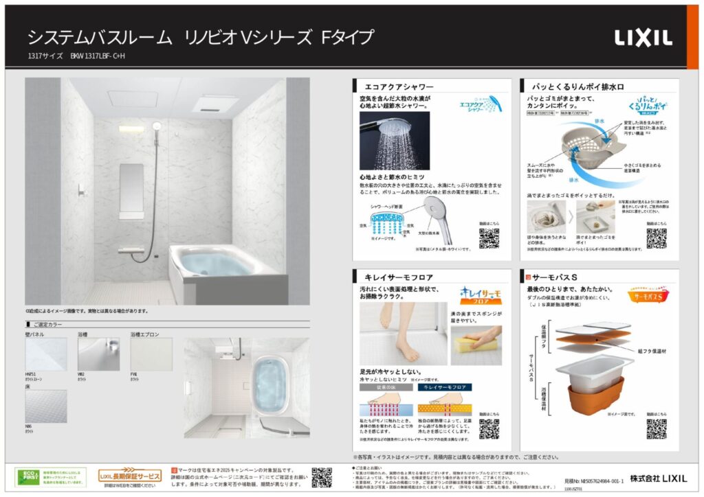 ホワイトを基調としたLIXILリノビオVシリーズの浴室は、清潔感あふれるモダンな印象に仕上がりました。明るく開放的な空間が広がり毎日の入浴時間をより快適に演出します。断熱仕様のサーモバスSによりお湯が長持ちし、快適さと省エネを両立してくれます。
