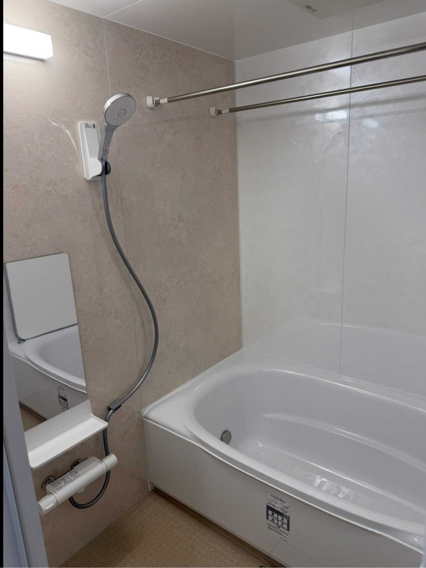 LIXILリノビオVシリーズを採用し、パネルにはマーフィルベージュを選びました。上品でやわらかなベージュと白の壁が調和することで明るく温かみのある浴室に仕上がっています。キレイサーモフロアは乾きやすく滑りにくいため、お手入れもラクに行えます。シンプルで洗練されたデザインと機能性が融合した毎日使うのが楽しみになる浴室に仕上がりました。