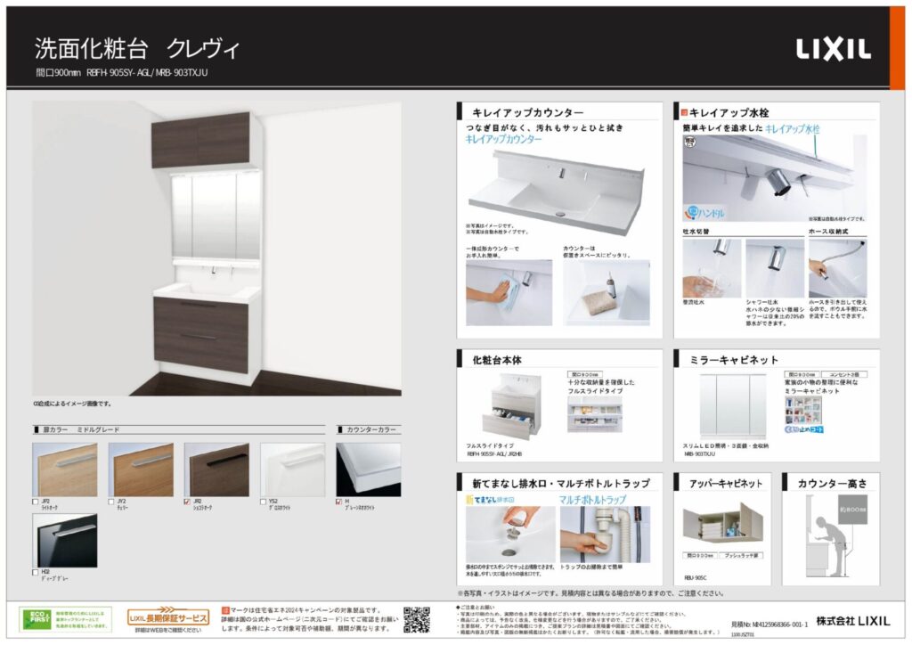 取り付け製品名 | LIXIL 洗面化粧台 クレヴィ |