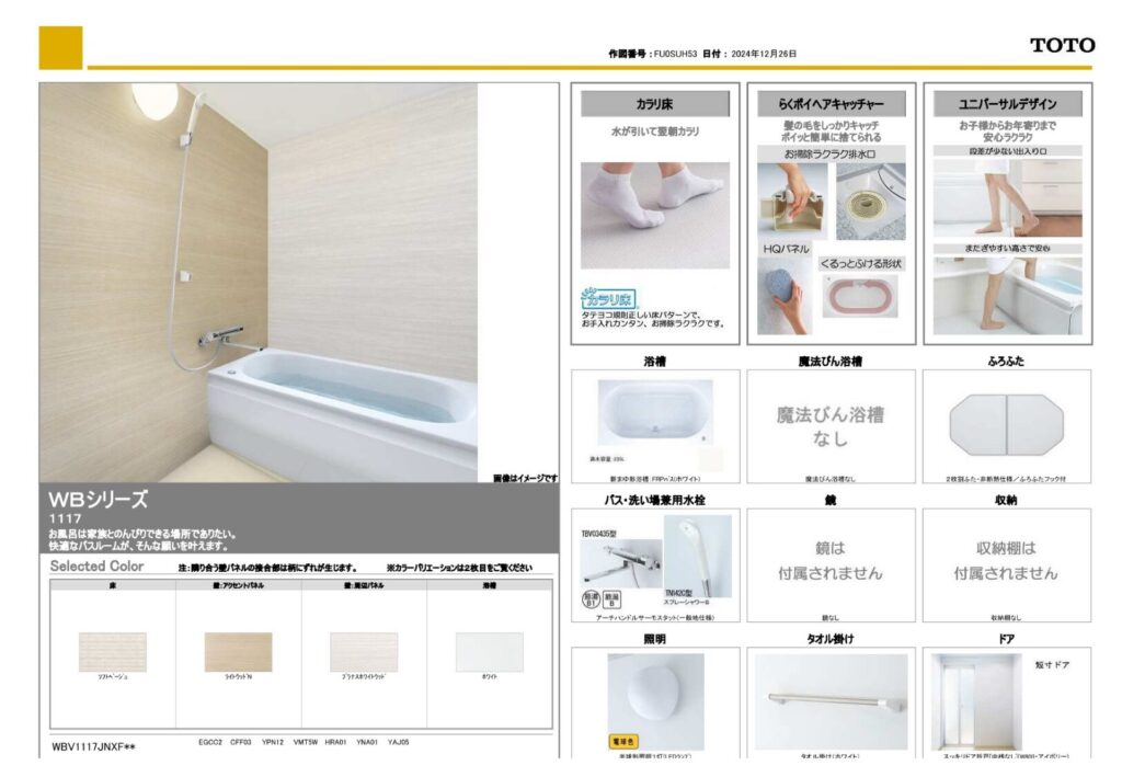 在来浴室からTOTOのWBシリーズへリフォームしました。浴槽の位置が低くなり、以前より出入りがラクになりました。また滑りにくい床や手触りの良い浴槽素材になったことで毎日の入浴がより快適に。