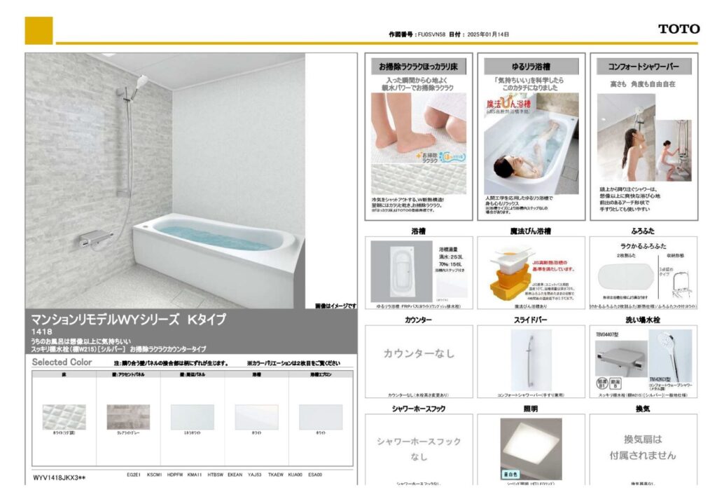 取り付け製品名 | TOTO マンションリモデルWYシリーズ |