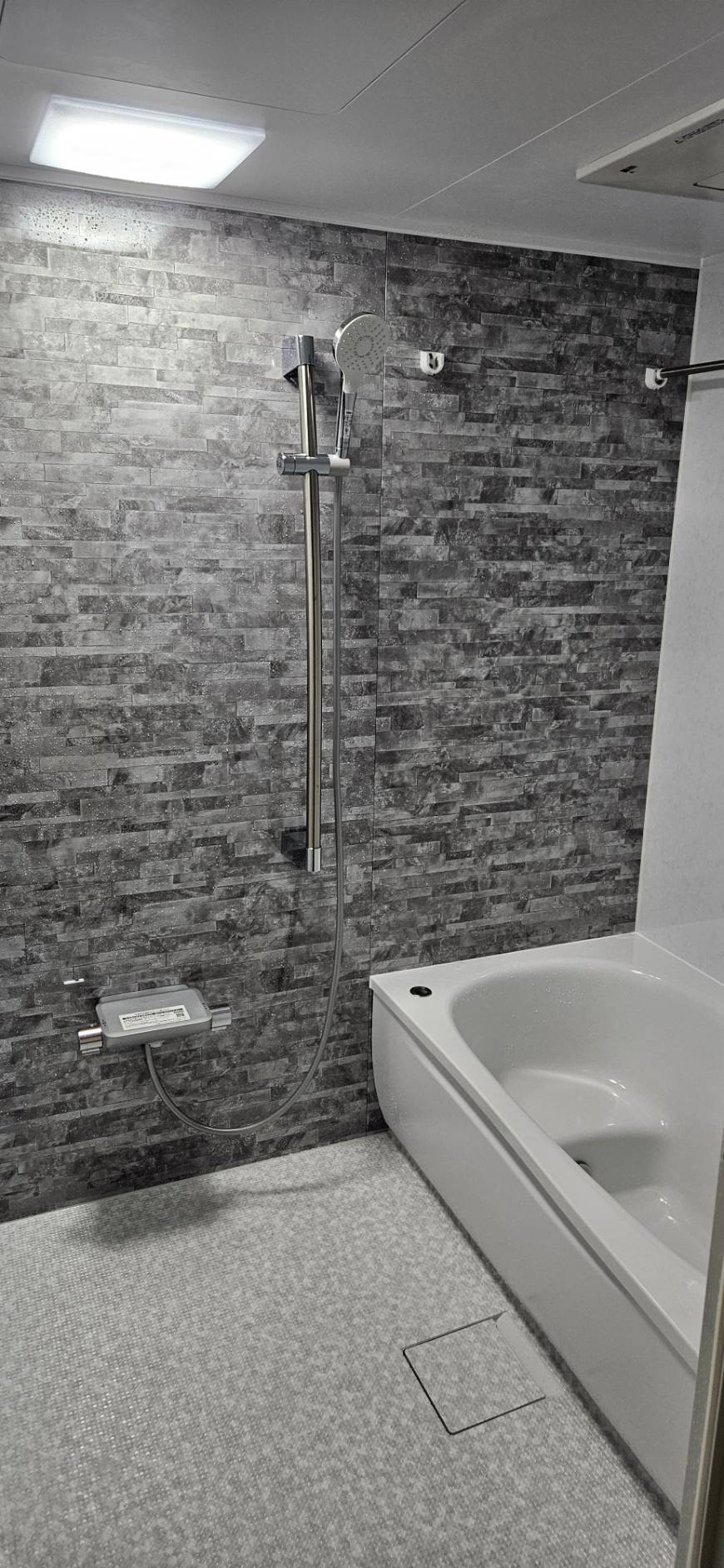 クレアライトグレーのパネルを取り入れたTOTO WYシリーズの浴室。無駄のないシンプルなデザインにグレーの落ち着いたトーンが映え静かな高級感を演出しています。