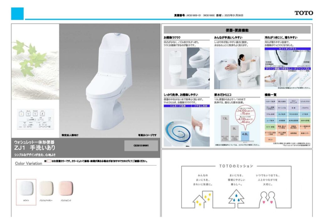 取り付け製品名LIXIL リノビオVシーリズ・TOTO ZJ1手洗いあり
