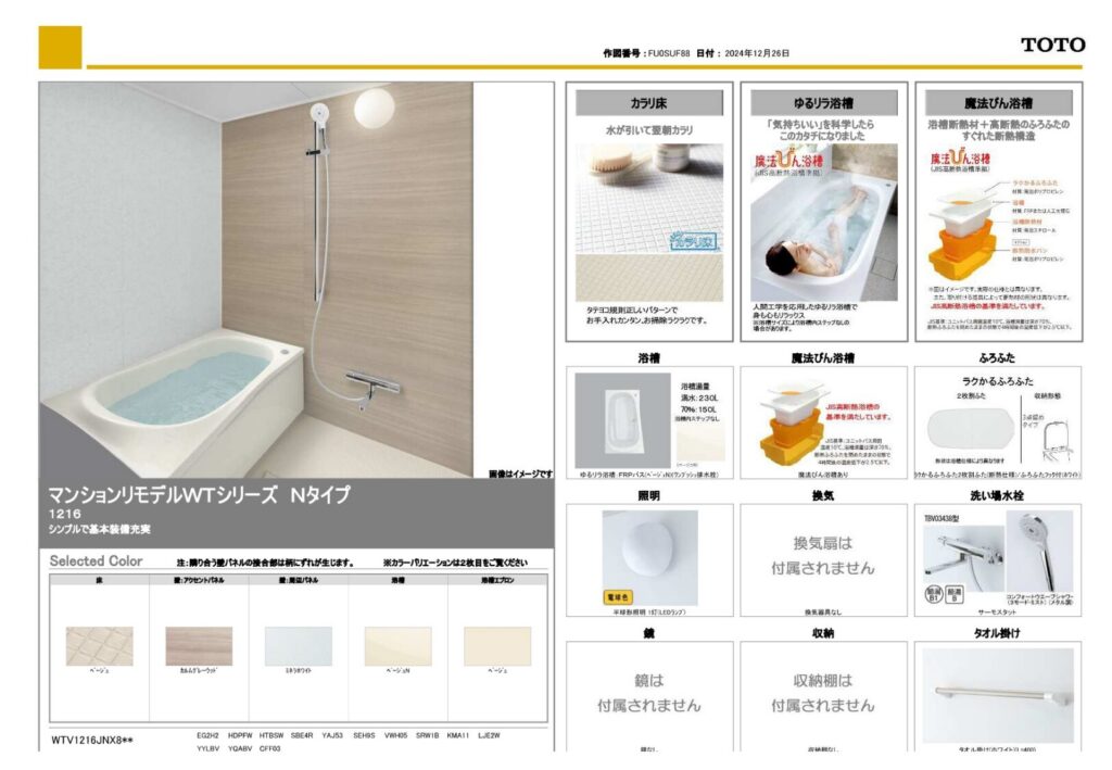 取り付け製品名 | TOTO マンションリモデルWTシリーズ・TOTO オクターブLite |