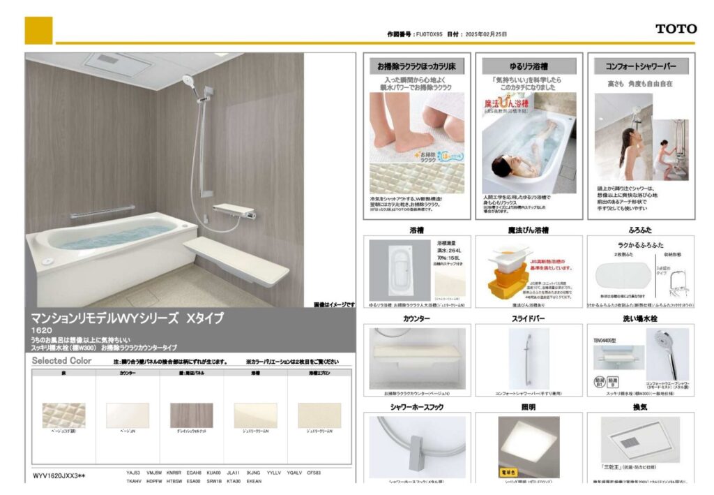 取り付け製品名TOTO マンションリモデルWYシリーズ/TOTO オクターブ