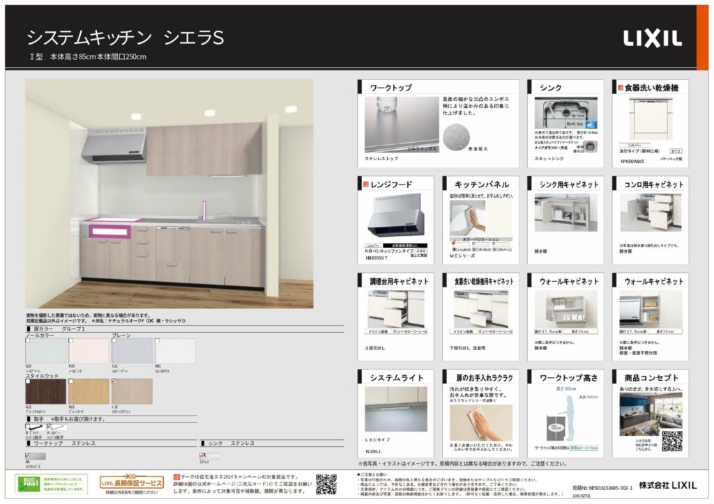 収納力のあるキャビネットと汚れにくいワークトップで家事の負担を軽減してくれます。ラスティックアッシュの落ち着いた木目が日々の料理時間を癒しのひとときに変えます。