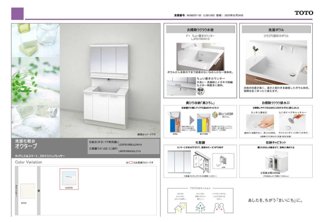 取り付け製品名 | クリナップ rakuera(ラクエラ)・TOTO 洗面化粧台 オクターブ |