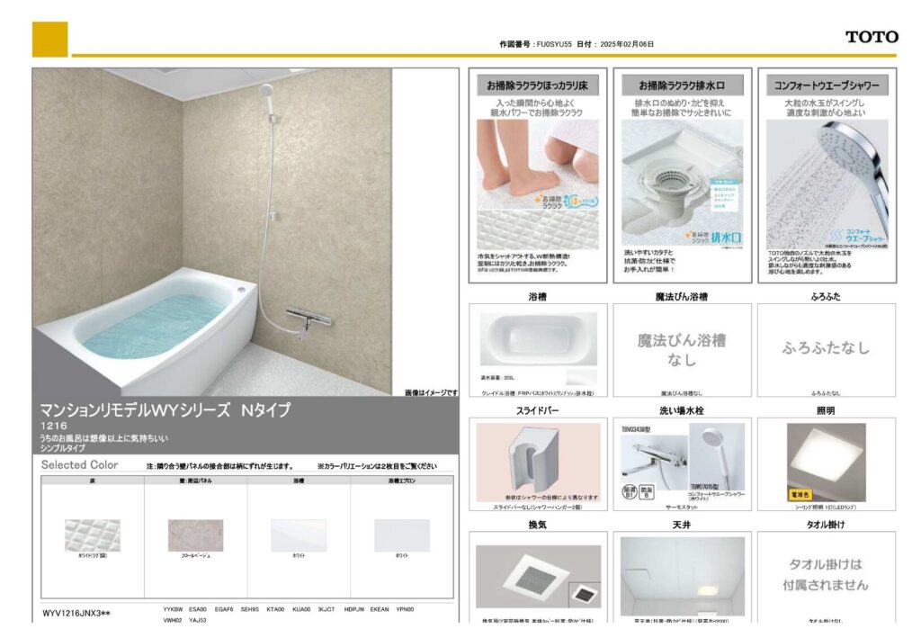 取り付け製品名 | TOTO マンションリモデルWYシリーズ |