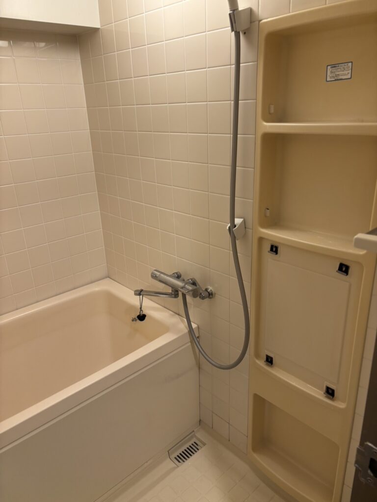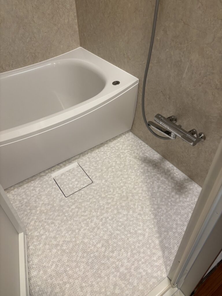 タイル調の浴室から、TOTO WYシリーズフロールベージュで一新。白とのコントラストがやわらかく、全体に統一感が生まれました。