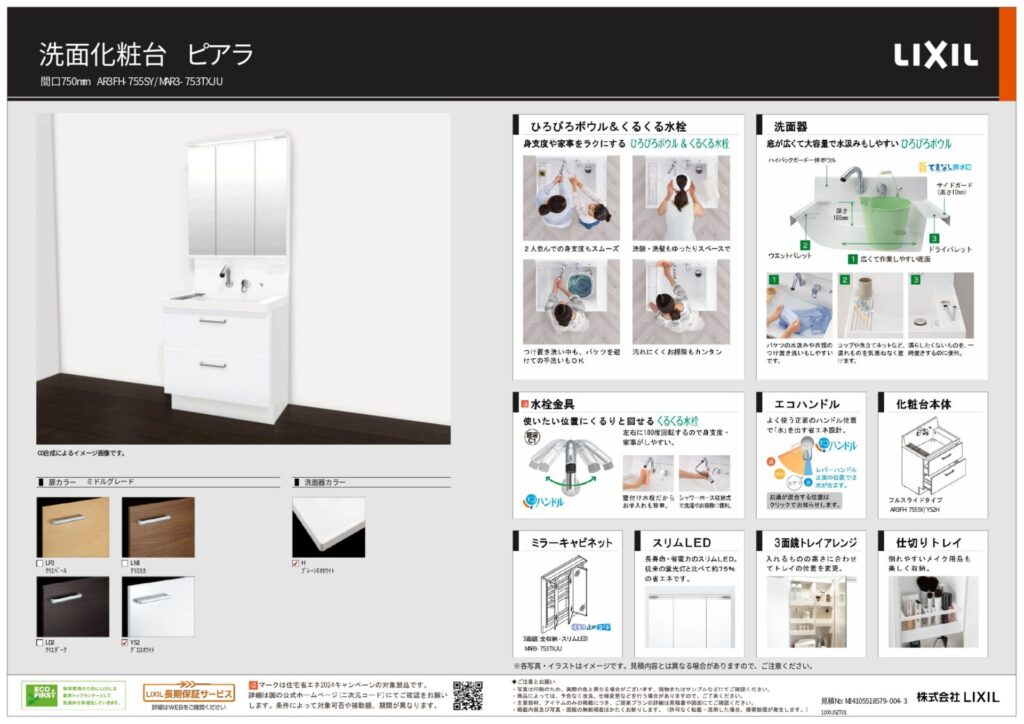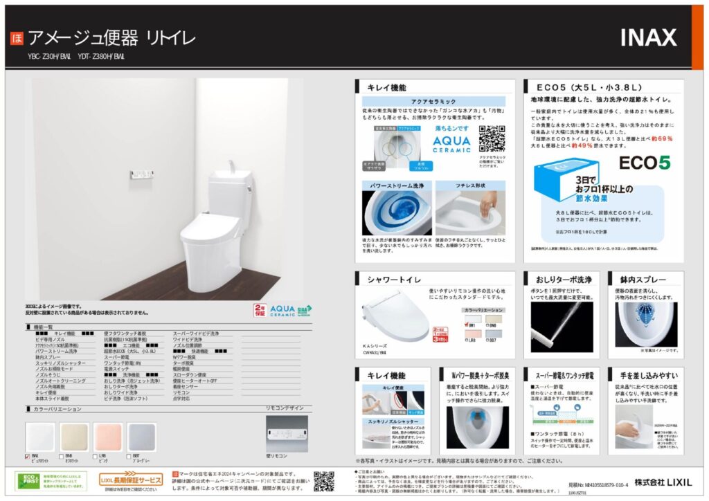 | 取り付け製品名 | LIXIL ノクト/LIXIL リデアMタイプ/LIXIL ピアラ/ LIXIL アメージュ |