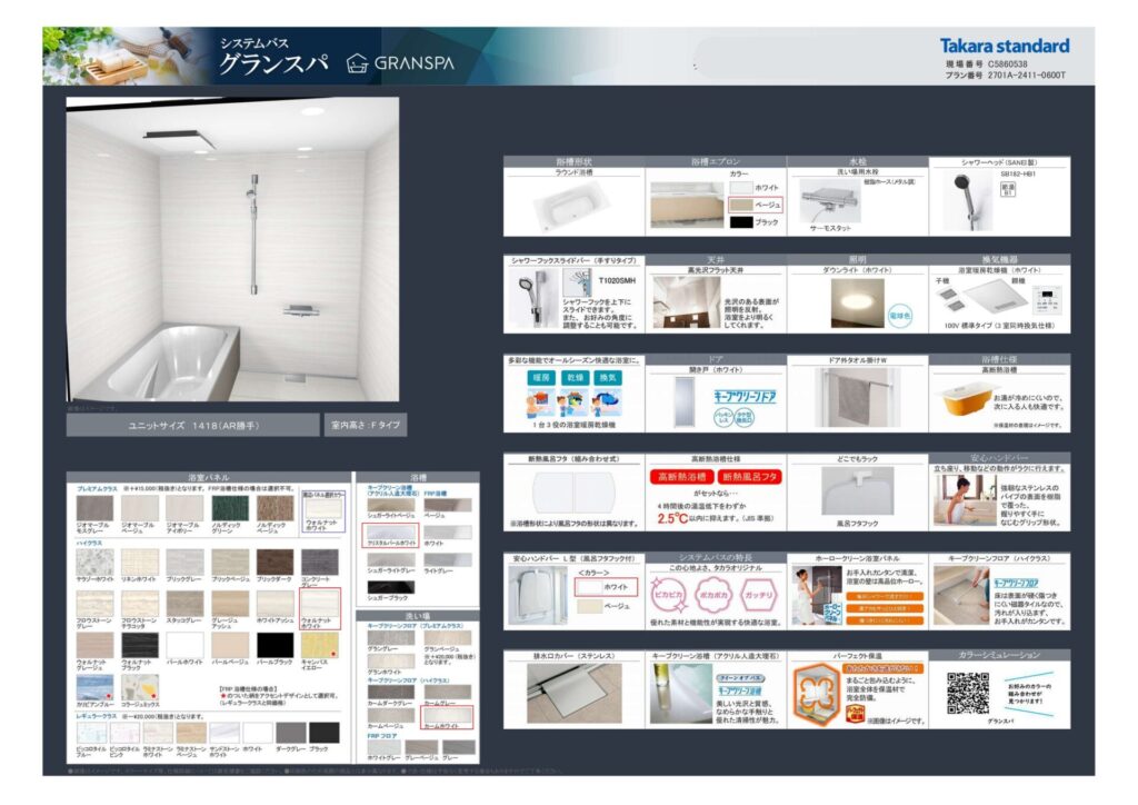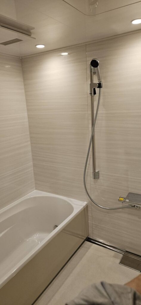 壁・パネルにはウォルナットホワイトを基調とし浴槽エプロンにはアクセントとしてベージュを採用。白トーンで統一されながらもベージュのやわらかな印象が加わることで、上質かつくつろぎ感のある空間に仕上がりました。