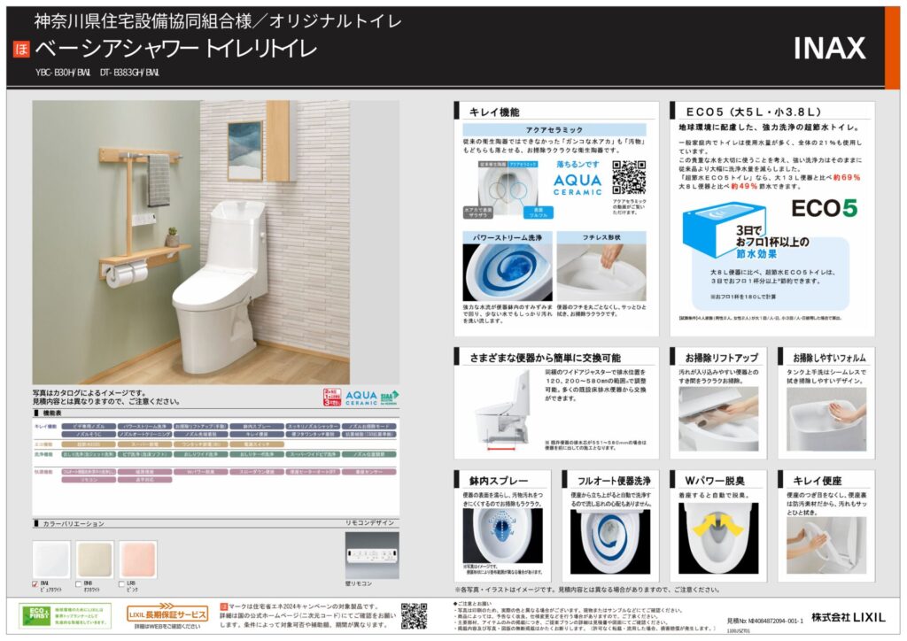 取り付け製品名クリナップ ラクエラ/LIXIL ベーシアシャワートイレ