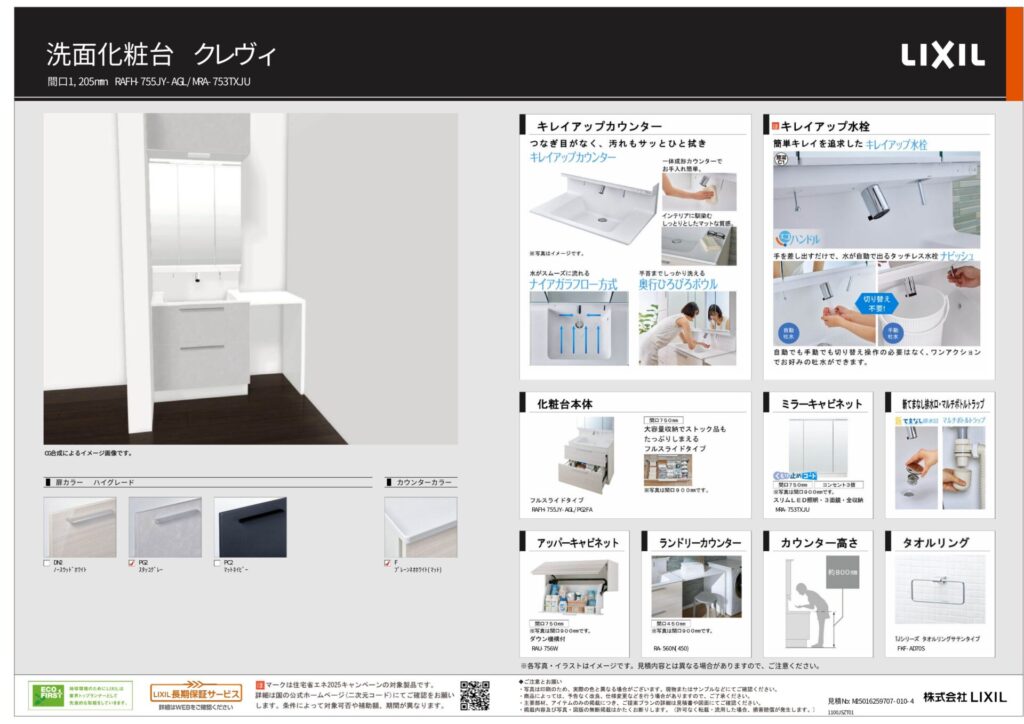 | 取り付け製品名 | LIXIL リノビオVシーリズ Fタイプ/ LIXIL 洗面化粧台 クレヴィ/ LIXIL Jフィット |