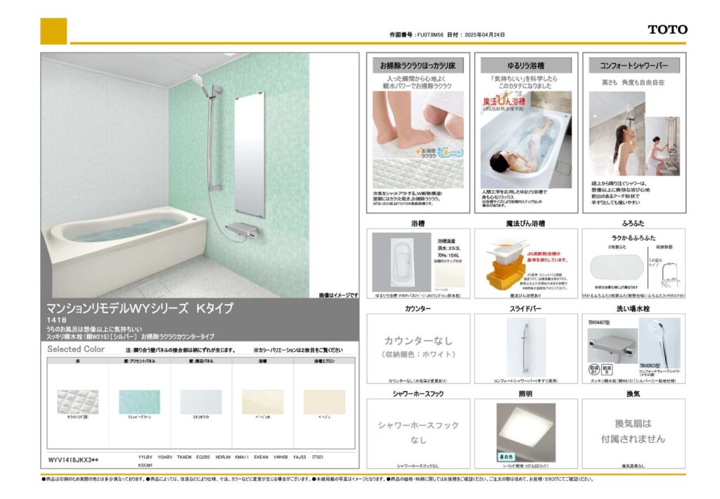 取り付け製品名TOTO マンションリモデルWYシリーズ Kタイプ