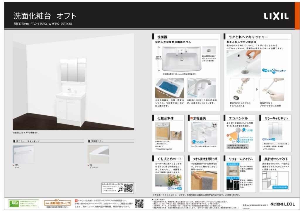 取り付け製品名LIXIL リデア Cタイプ/LIXIL 洗面化粧台 オフタ/LIXIL ベーシアシャワートイレリトイレ