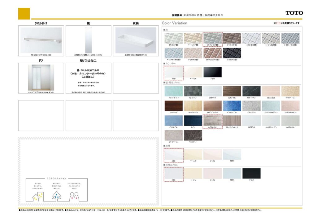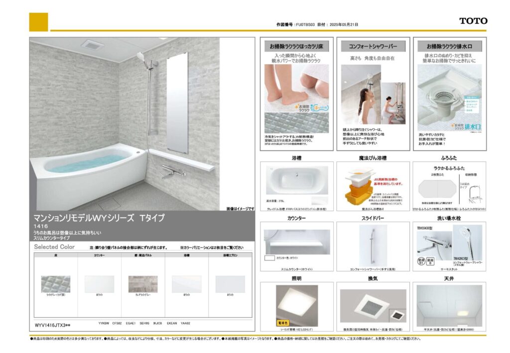 | 取り付け製品名 | TOTO WYシリーズ Tタイプ |