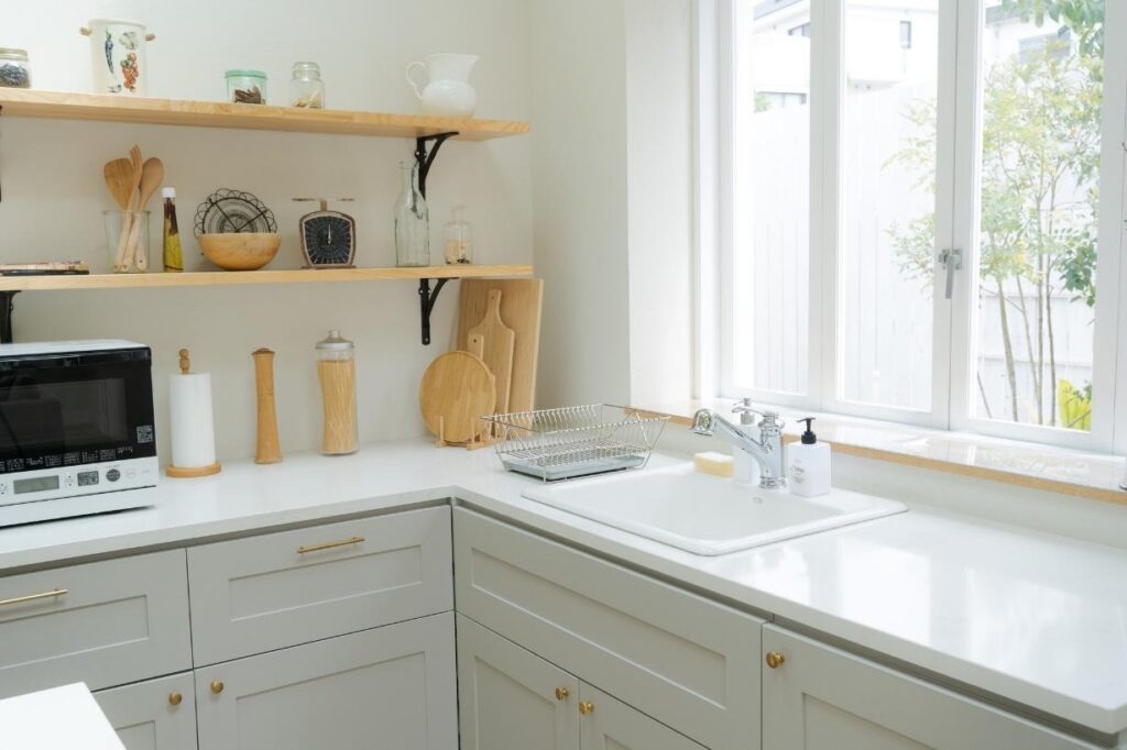 さらにコーナー部分や下部キャビネットを活用することで、収納量を確保しやすい構造でもあります。調理器具やストック品を分散して収納できるため、作業台の上を整理しやすく、見た目もすっきりと保てます。ただしコーナー収納は、使い方次第でデッドスペースになることがあるので、計画段階での工夫が必要です。