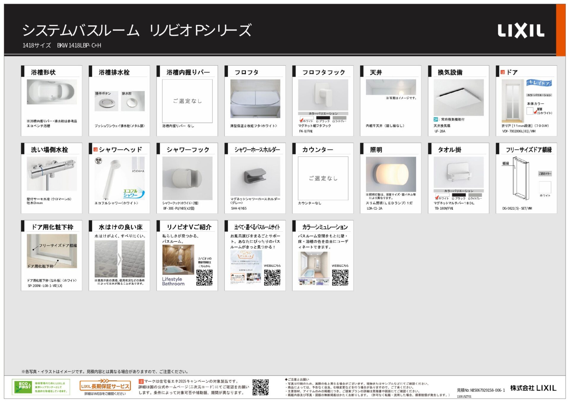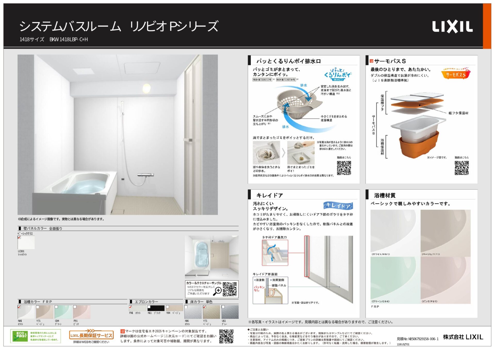 取り付け製品名 | LIXIL システムバスルーム リノビオPシーリズ |