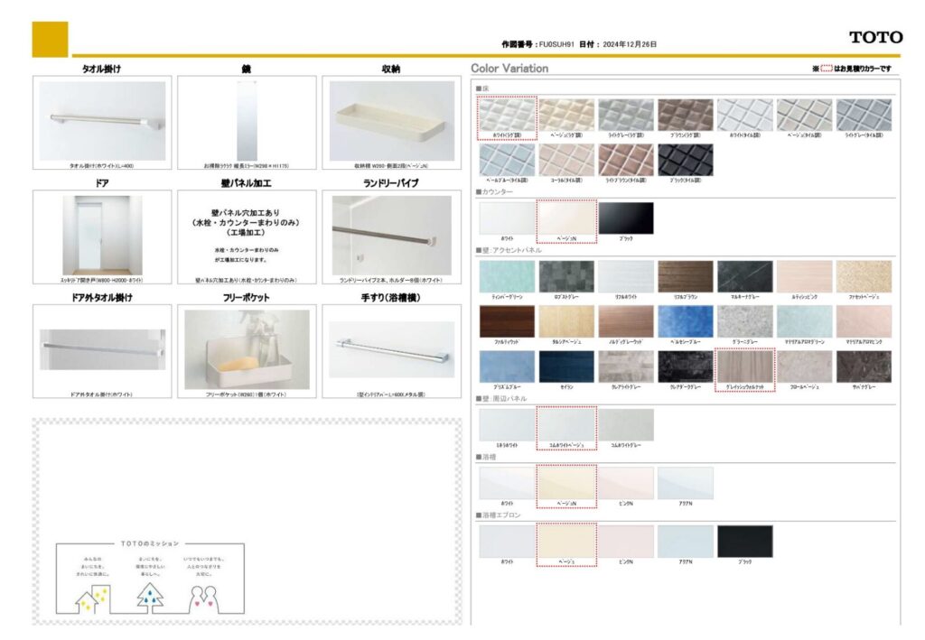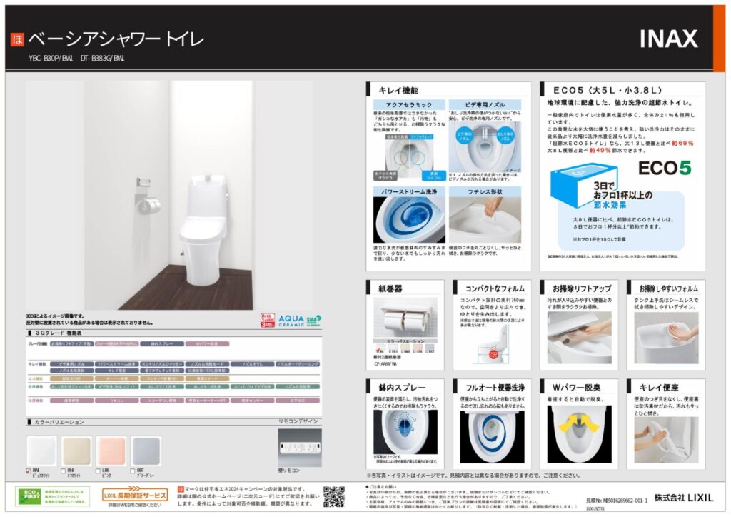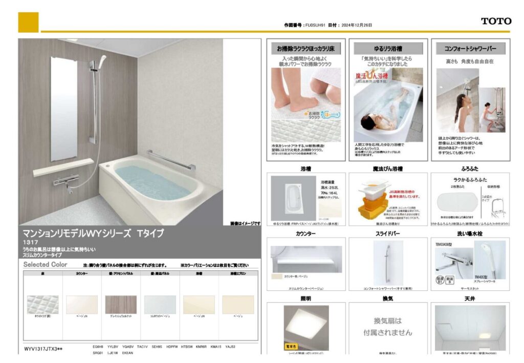 取り付け製品名 | TOTO マンションリモデルWYシリーズ/LIXIL ベーシアシャワートイレ |