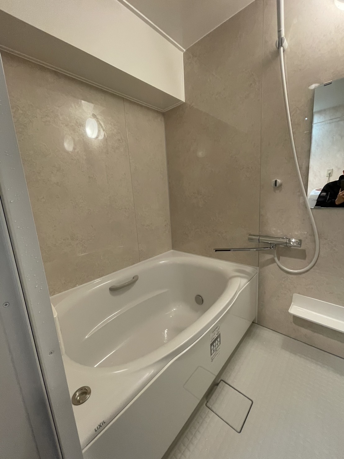 白を基調とした空間に柔らかなベージュが映え、落ち着きのある雰囲気を演出します。サーモバスSによりお湯が冷めにくく、さらにキレイサーモフロアは冬場でもヒヤッとしにくいので寒い日の入浴快適です。