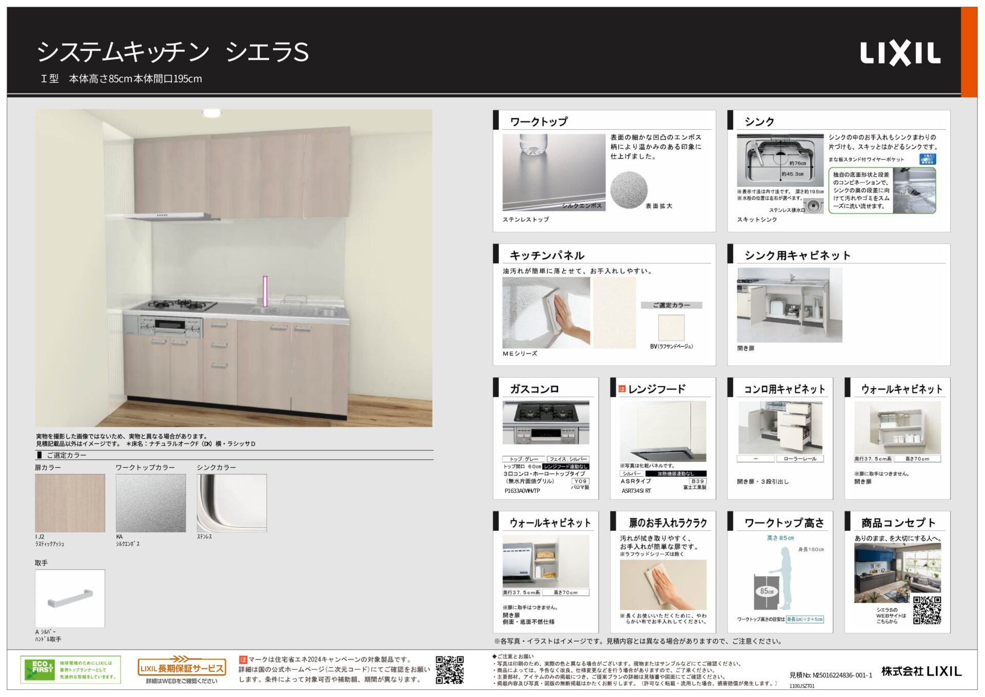 木目のぬくもりを感じるラスティックアッシュ扉に、シャープな輝きを放つステンレスワークトップを組み合わせたシエラS。自然素材のような優しい木目と、無機質な金属の質感が美しく調和し洗練されたナチュラルモダンな空間を演出しています。