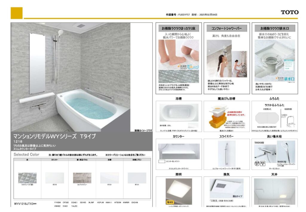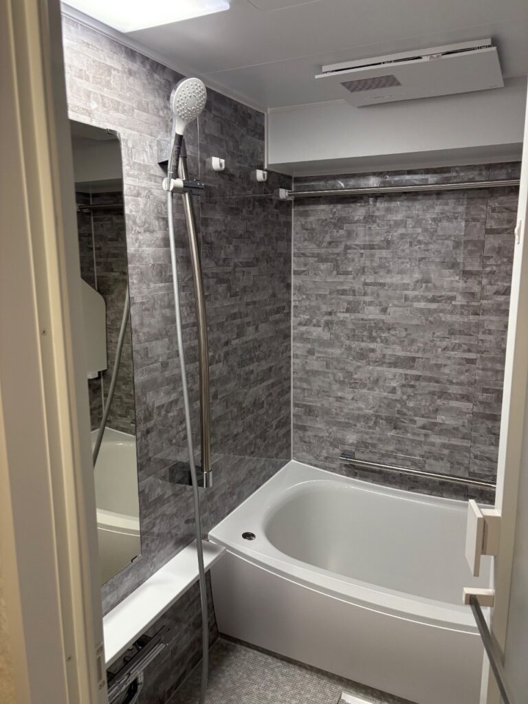 TOTO WYシリーズのクレアライトグレーを採用しグレートーンの中に上品な艶を加えた空間へ。白い石目調からの変化でよりモダンで落ち着いた印象に。