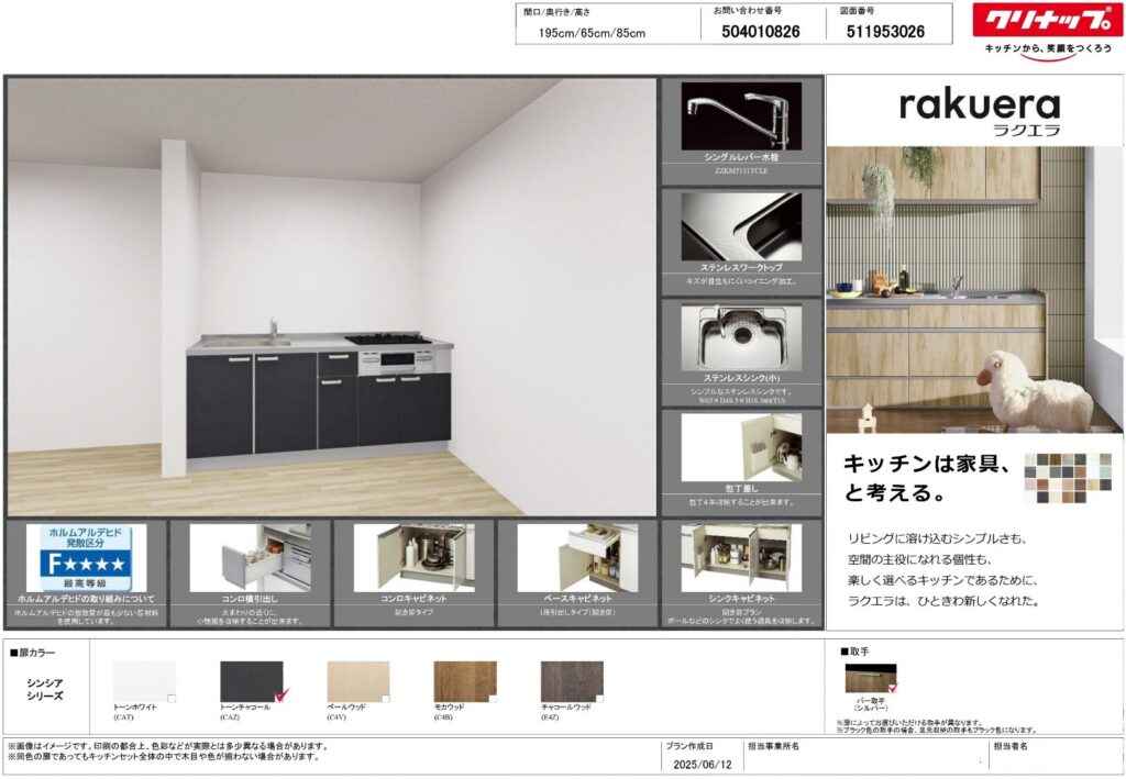 キッチンリフォーム お手入れしやすいステンレス×チャコールの クリナップ ラクエラ