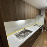 ワークトップには、人造大理石トップ(グロウホワイト)を選定。明るいカラーのワークトップで、キッチン空間をすっきりとした印象に整えます。